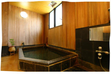 木の温もりに囲まれた温かい雰囲気のある檜のお風呂です。檜湯の源泉は、渋温泉でも数軒しか引いていないお湯をご堪能いただけます。もちろん、源泉かけ流し。硫黄泉となっております。肌にとてもいい温泉で、こちらの温泉の常連になるかたもおられます。貸し切りでご利用できますのでごゆっくりとお入り下さい。